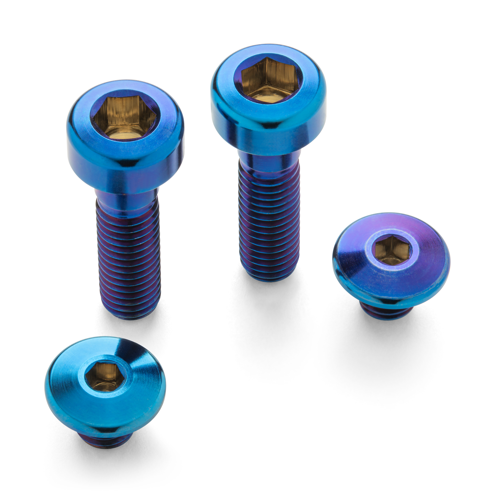 Our custom four-piece brake lever hardware kits are precision machined from strong, corrosion-resistant 6/4 titanium and, well, look awesome. Â
